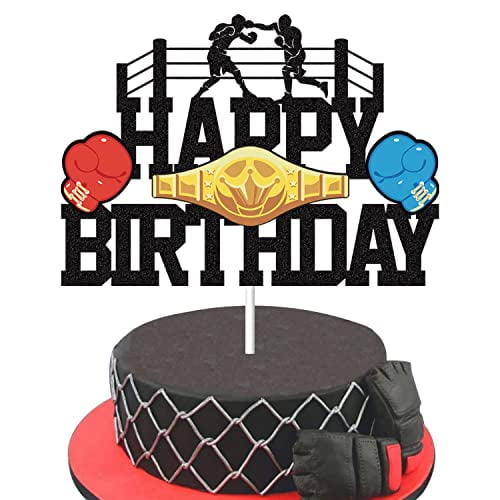 Amazon Com Boxing Happy Birthday Cake Topper Pugilist Birthday Party Decorations Boxing Match Theme Bday Decor Supplies For Men Boy Pre Assembled Double Sided Glitter Grocery Gourmet Food